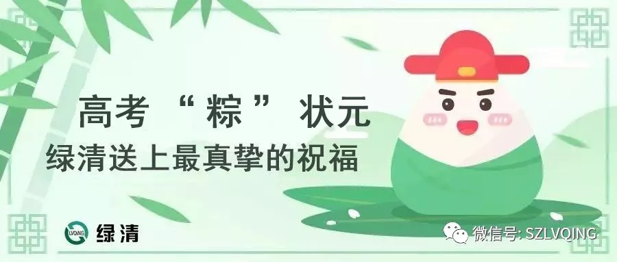 在端午佳節(jié)到來之際,綠清人感謝您過去半年中對(duì)我們服務(wù)工作的支持與理解,在此綠清全體員工祝福您和您的家人“合家團(tuán)圓,身體安康”。同時(shí)也祝所有高考學(xué)子們“金榜題名”考上理想學(xué)府!