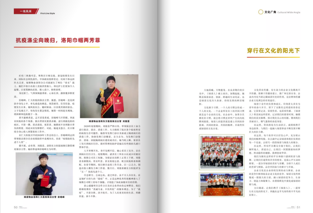 ? ? ? ?人文精神是人類(lèi)在求取自身生存、發(fā)展的過(guò)程中,以真善美的價(jià)值理想為核心,不斷實(shí)現(xiàn)自身解放的一種自覺(jué)的思想信念和文化準(zhǔn)則。通過(guò)特稿、人物觀點(diǎn)、一線員工風(fēng)采等方式,重點(diǎn)關(guān)注綠清人密切相關(guān)的工作、生活,借助綠清人精彩紛呈的切面,展現(xiàn)綠清人多元的人文精神風(fēng)貌。