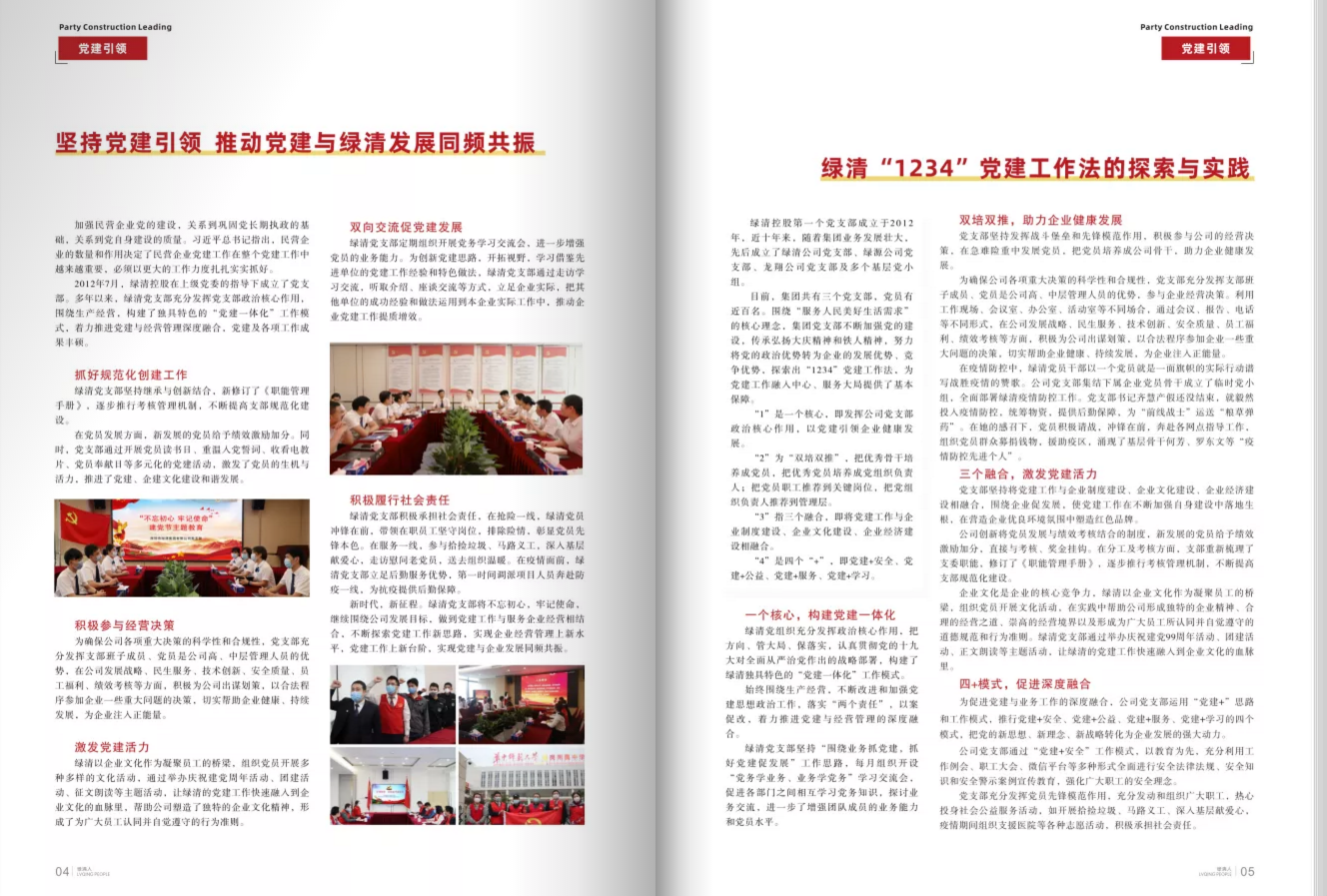 ? ? ? ?十年風(fēng)華,厚積薄發(fā)?!毒G清人》堅(jiān)持黨建引領(lǐng),做到黨建工作與服務(wù)企業(yè)經(jīng)營(yíng)相結(jié)合,發(fā)揮黨組織的戰(zhàn)斗堡壘作用,使黨建成為增強(qiáng)企業(yè)凝聚力、競(jìng)爭(zhēng)力的源泉。根據(jù)企業(yè)發(fā)展目標(biāo),以爭(zhēng)創(chuàng)先進(jìn)黨組織為載體,真正將黨建工作轉(zhuǎn)化為“看得見(jiàn)、摸得著”的先進(jìn)生產(chǎn)力,實(shí)現(xiàn)黨建帶動(dòng)企業(yè)發(fā)展的雙贏目標(biāo)。