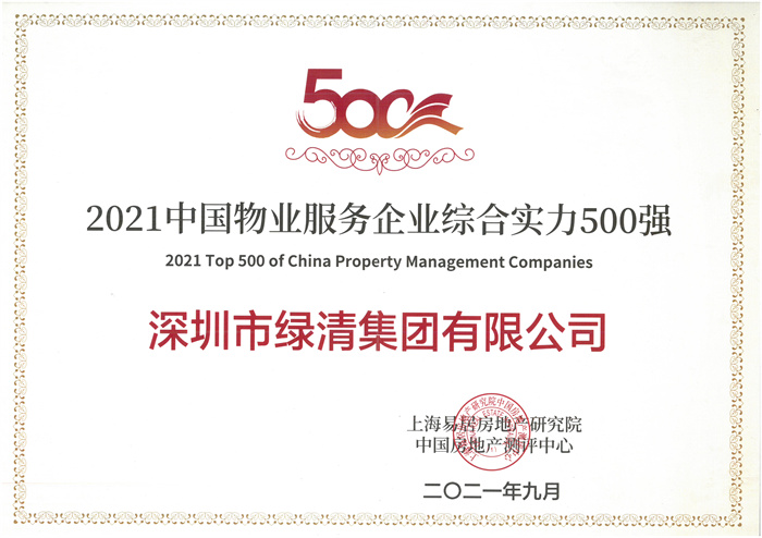 早前,在成都召開(kāi)的“2021中國(guó)物業(yè)服務(wù)企業(yè)綜合實(shí)力研究成果發(fā)布會(huì)”上,綠清控股旗下的深圳市綠清集團(tuán)有限公司(簡(jiǎn)稱:綠清公司)、深圳市綠源物業(yè)環(huán)保產(chǎn)業(yè)有限公司(簡(jiǎn)稱:綠源公司,現(xiàn)更名為“深圳市綠源實(shí)業(yè)管理有限公司”)憑借各項(xiàng)優(yōu)異指標(biāo),再次榮膺2021物業(yè)服務(wù)企業(yè)綜合實(shí)力TOP500。其中,綠清公司年度名次較去年提升5個(gè)位次,綠源公司提升了10個(gè)位次。