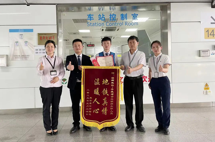 老人因醉酒不慎向后摔倒,危機時刻張星用自己瘦弱的身體墊靠在老人后方一同摔倒。他不顧自己傷痛,優(yōu)先檢查乘客并報告車控室,因“肉墊”保護,老人全身無傷。其女兒李女士趕到布吉站對張星及車站表達感謝,贈送錦旗一面,贊其溫暖人心。