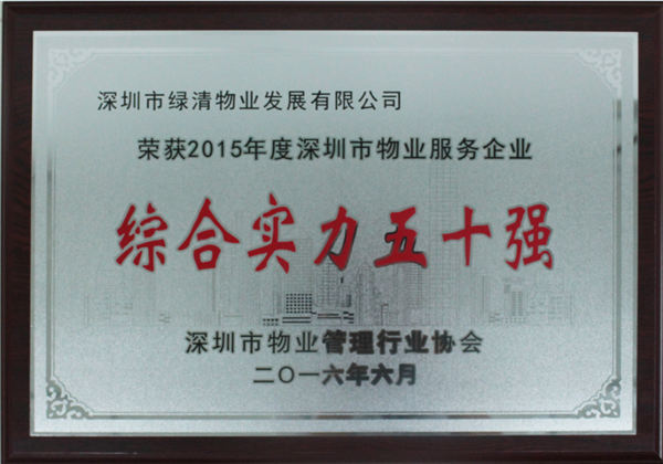 2016年6月23日,2015年度深圳市物業(yè)服務(wù)企業(yè)綜合實力五十強(qiáng)研究報告發(fā)布會在深圳市會展中心隆重舉行。綠清物業(yè)以優(yōu)秀的業(yè)績和服務(wù)水平,被評為“2015年度深圳物業(yè)服務(wù)綜合實力50強(qiáng)企業(yè)”,并在“2015年度業(yè)主滿意度”指標(biāo)上取得前十佳績。公司董事長陳中出席了本次發(fā)布會。