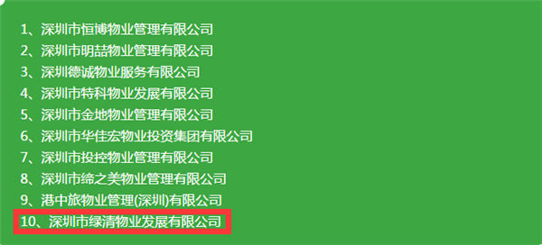 深圳市物業(yè)行業(yè)協(xié)會評審指標(biāo)涵蓋管理面積、優(yōu)秀項目、資產(chǎn)規(guī)模、營業(yè)收入、利潤、業(yè)主滿意度等。綠清物業(yè)能夠在強(qiáng)手如林的深圳眾多物業(yè)管理知名企業(yè)中脫穎而出,再次證明了市場和行業(yè)對綠清品牌和實力的高度認(rèn)同。