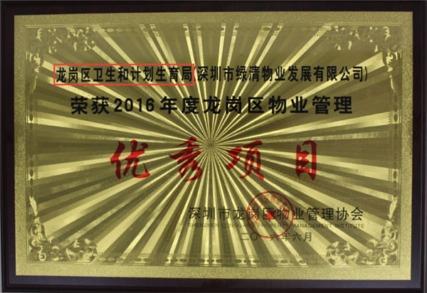 龍崗衛(wèi)生和計劃生育局項目獲得“龍崗區(qū)優(yōu)秀項目”榮譽(yù)