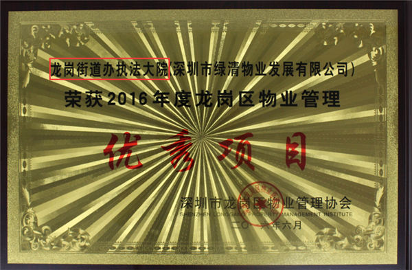 龍崗執(zhí)法隊大院項目獲得“龍崗區(qū)優(yōu)秀項目”榮譽(yù)