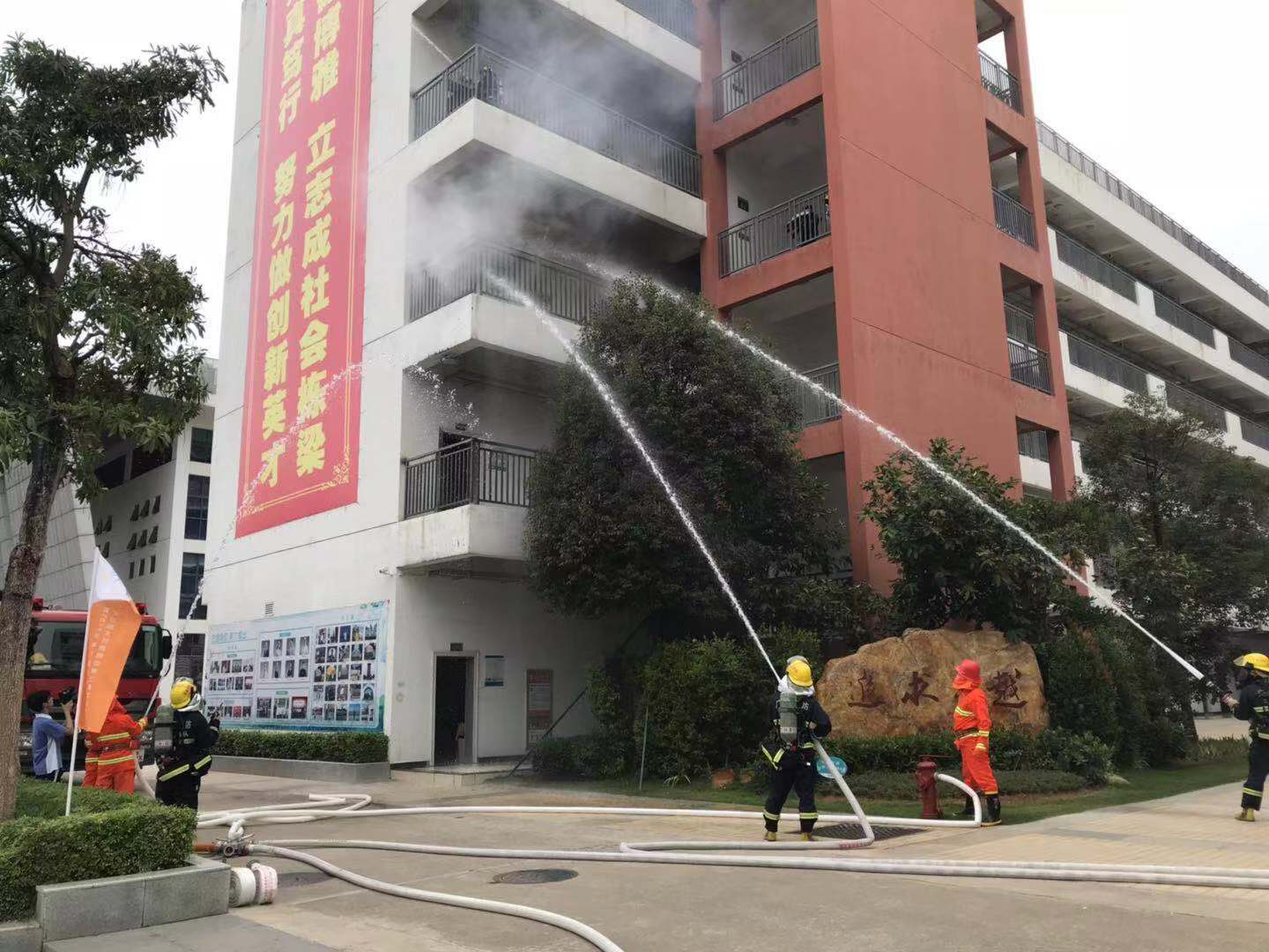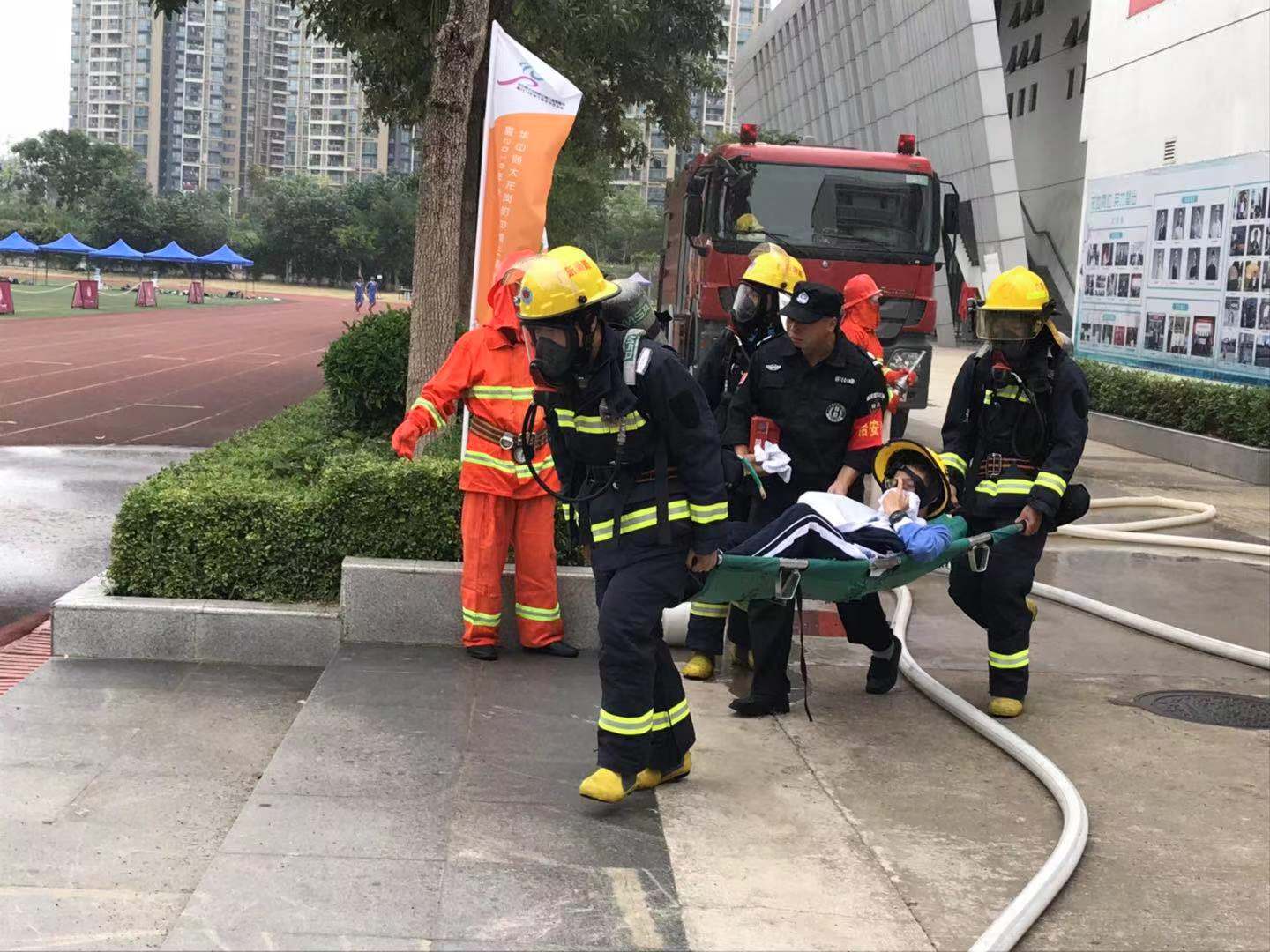 5、待人員有序撤離后,迅速撲滅火患。圓滿完成了預期目標,起到了良好的宣傳、教育和示范效果。整個救援演練歷時30分鐘。