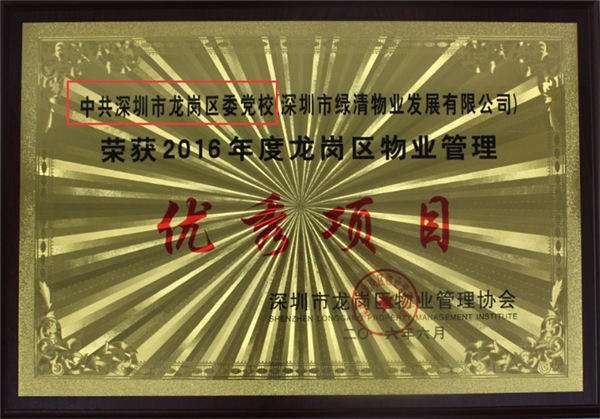 龍崗黨校項目獲得“龍崗區(qū)優(yōu)秀項目”榮譽 龍崗衛(wèi)生和計劃生育局項目獲得“龍崗區(qū)優(yōu)秀項目”榮譽 龍崗執(zhí)法隊大院項目獲得“龍崗區(qū)優(yōu)秀項目”榮譽 龍崗工程質(zhì)量檢查檢驗站項目獲得“龍崗區(qū)優(yōu)秀項目”榮譽