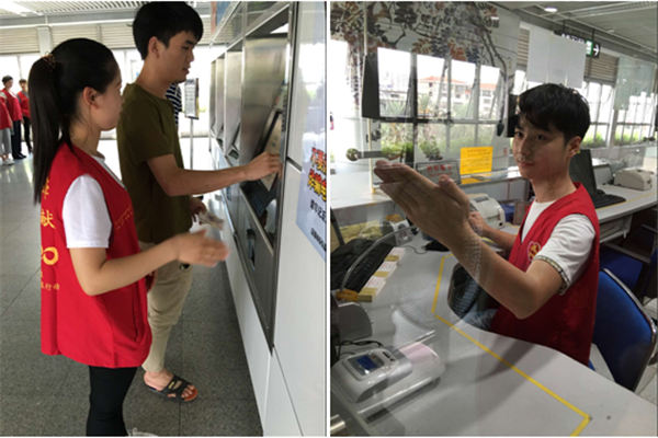 熱心的綠清人耐心幫乘客解答問題,維護(hù)現(xiàn)場秩序,有的乘客用自助售票機(jī)買票出現(xiàn)問題,就主動上前幫助乘客解決問題,幫助乘客成功購票。有的乘客在通過閘機(jī)口時,由于帶的行李過多無法通過,就前去幫助乘客將行李搬過閘機(jī)口。活動過程中,我們綠清人熱情高漲,看著乘客們臉上的笑臉,大家的疲憊都一掃而空。