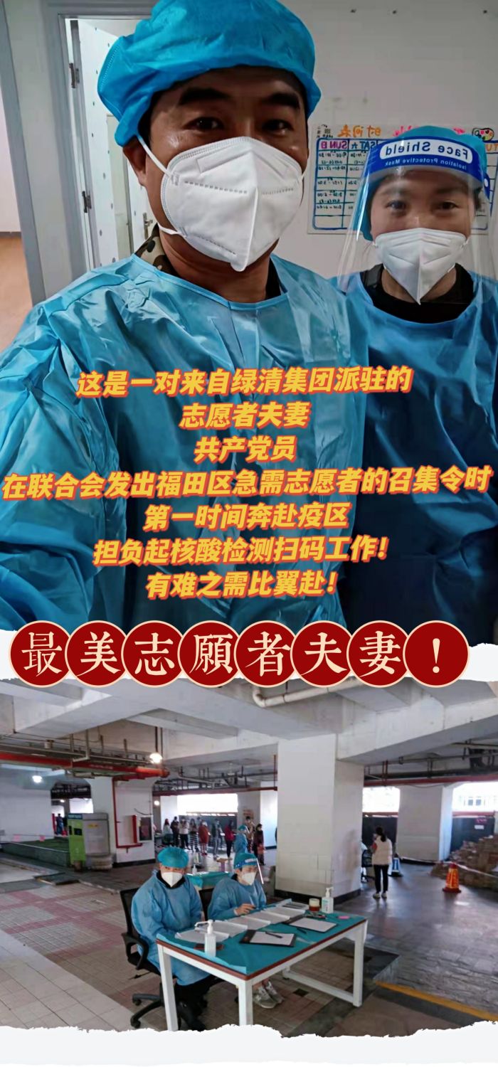 我和妻子始終保持著共同的信念,沒有大家哪來小家,我們夫妻在聽到福田區(qū)志愿者召集令后,沒有猶豫,第一時間加入福田區(qū)物業(yè)抗疫志愿隊,奔赴疫區(qū),勇?lián)熑巍<词挂咔閮疵?,危險重重,但我們義不容辭,因為我們身后是人民,不忘初心,牢記使命。