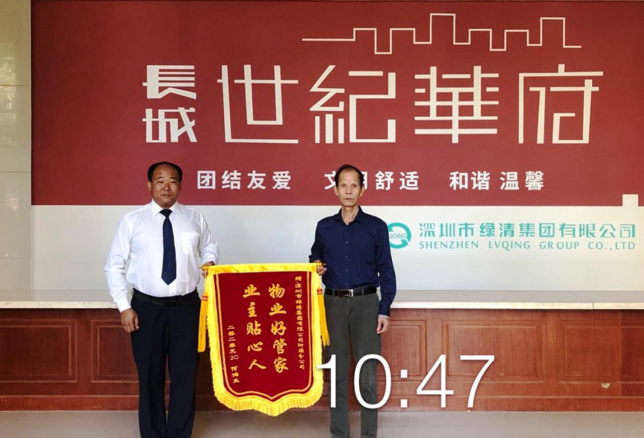 綠清集團(tuán)河源分公司的優(yōu)質(zhì)服務(wù)有口皆碑。11月11日上午,長城世紀(jì)華府二棟業(yè)主何先生將一面“物業(yè)好管家,業(yè)主貼心人”的鮮艷錦旗,送到了物業(yè)管理處,以感謝公司為小區(qū)提供一如既往的貼心服務(wù)。