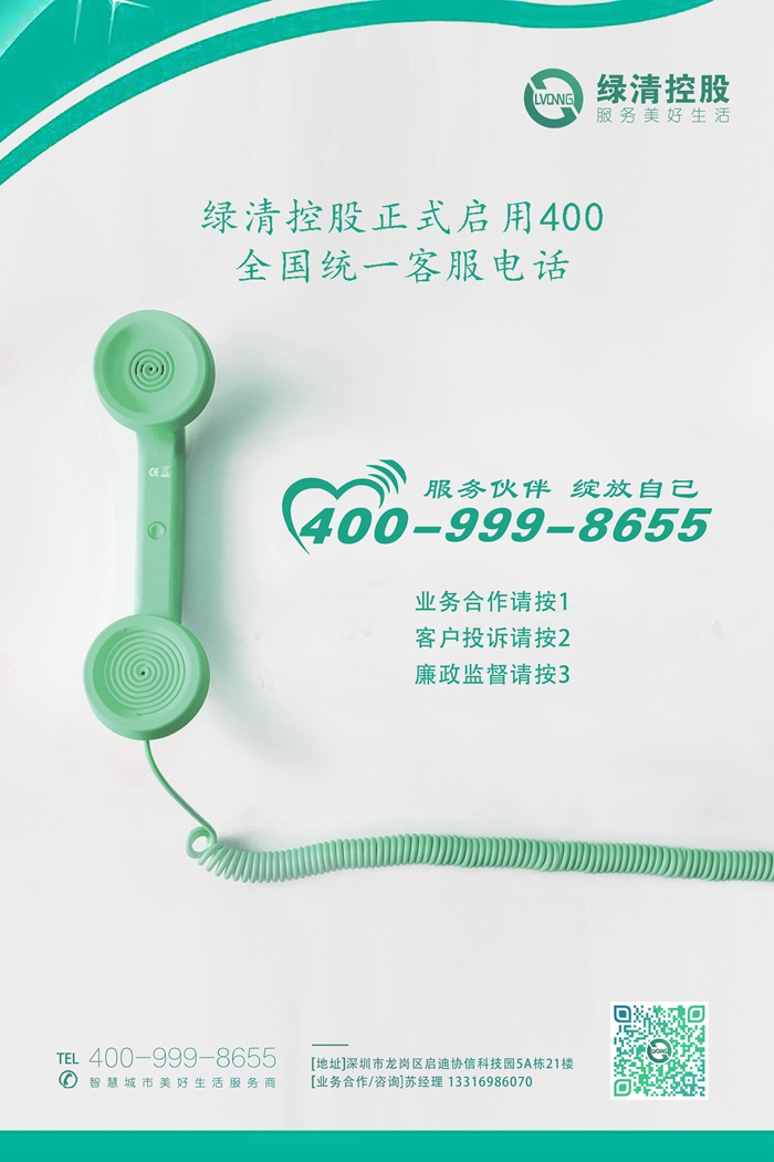 為提高公司服務(wù)質(zhì)量,快速響應(yīng)全國客戶市場的業(yè)務(wù)咨詢、合作,進(jìn)一步完善企業(yè)內(nèi)部監(jiān)督,從即日起,綠清控股正式啟用400全國統(tǒng)一客服電話:400-999-8655。