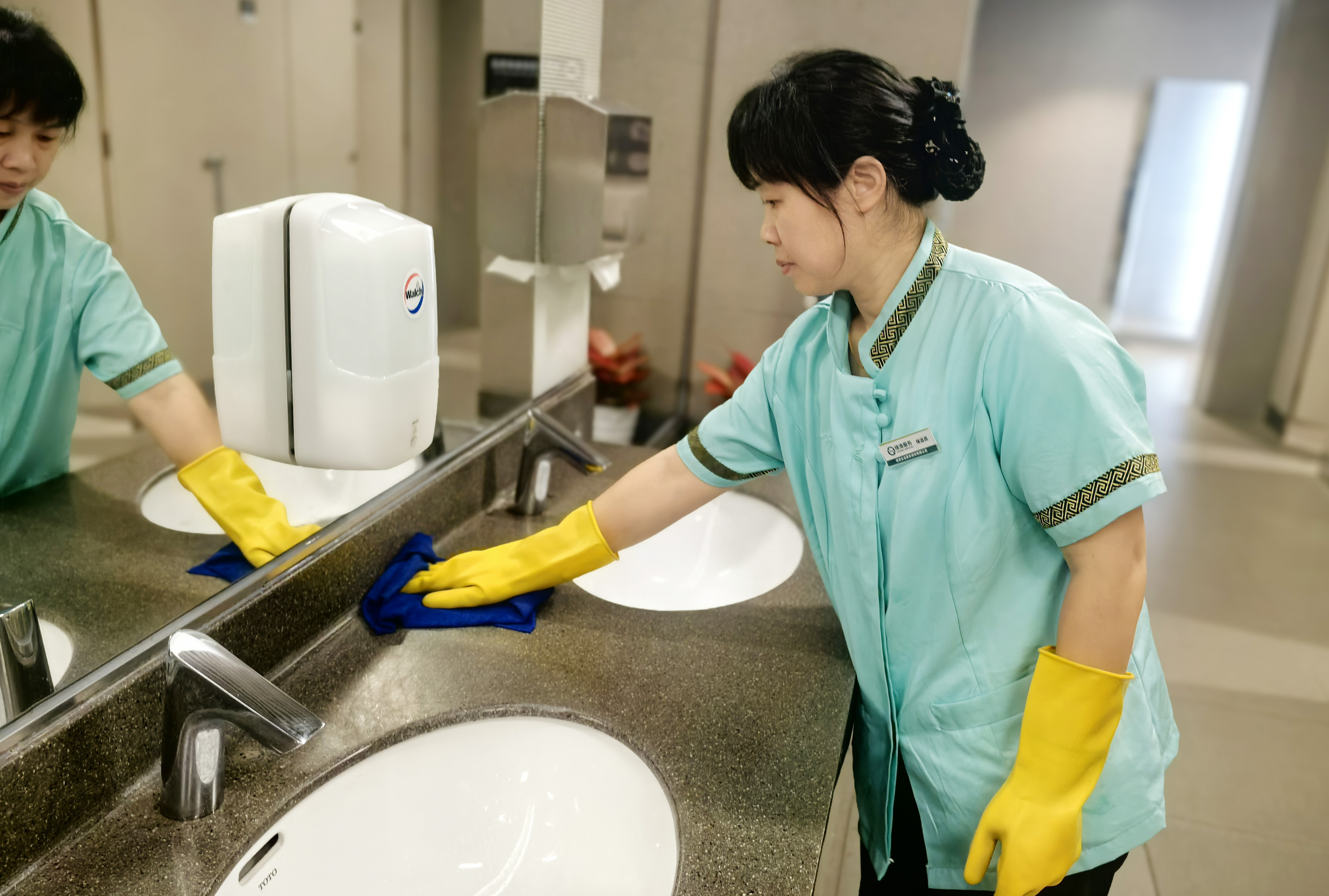 綠清服務(wù)深知衛(wèi)生間是旅客使用頻率高、關(guān)注度也高的區(qū)域,因此投入了大量的人力與物力進(jìn)行精細(xì)化管理。從地面到墻面,從洗手臺(tái)到馬桶,每一處都經(jīng)過(guò)嚴(yán)格消毒與深度清潔,確保無(wú)異味、無(wú)水漬、無(wú)污漬。同時(shí),公司還配備了充足的衛(wèi)生用品,如紙巾、洗手液等,并設(shè)置了醒目的指示牌與溫馨提示,讓旅客在使用過(guò)程中感受到便捷與舒適。