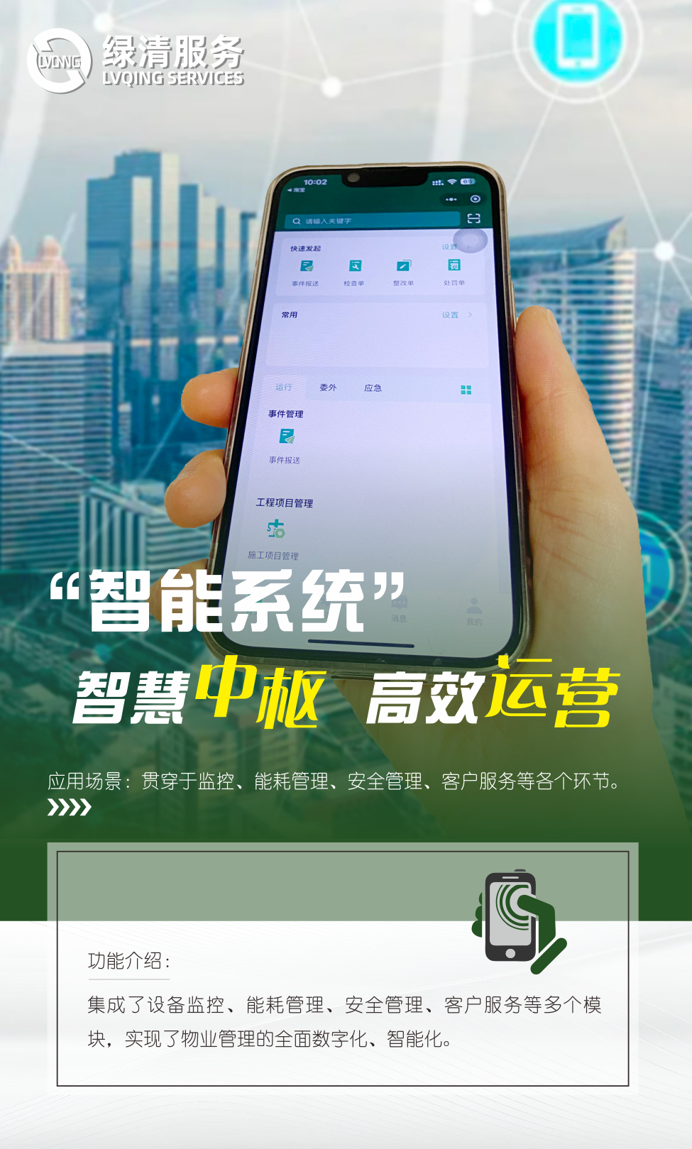 智能系統(tǒng)的建設(shè)與廣泛應(yīng)用,標(biāo)志著綠清服務(wù)的物業(yè)服務(wù)進(jìn)入了一個全新的發(fā)展階段,它不僅提升了物業(yè)服務(wù)的專業(yè)性和智能化水平,還為業(yè)主提供了更加個性化、便捷的服務(wù)體驗,增強(qiáng)了綠清服務(wù)的市場競爭力和品牌影響力。