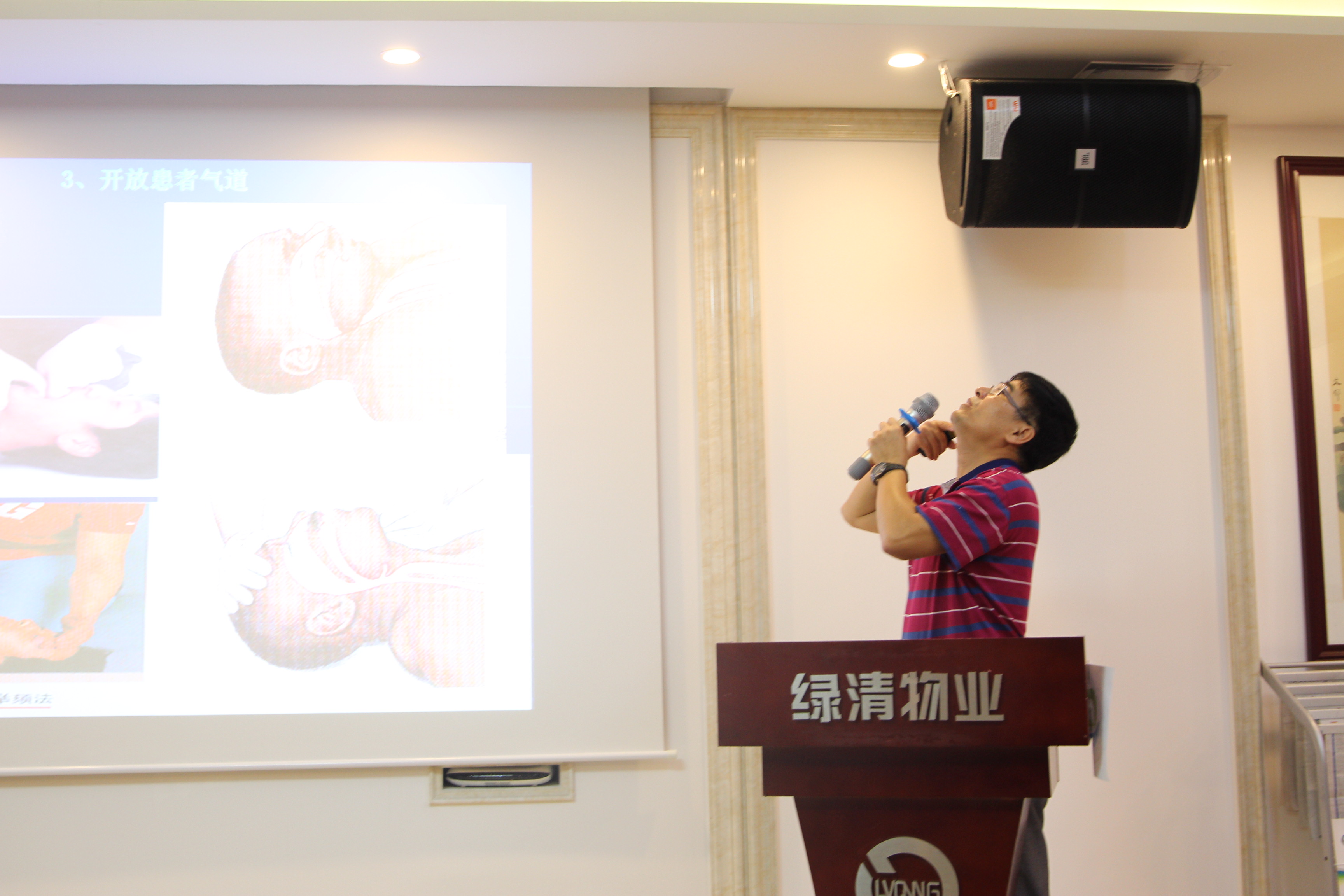 為提高員工的急救技能知識,為社會注入更多的熱心救援能手,更好地履行綠清“為社會分擔(dān)責(zé)任”的企業(yè)使命,9月16日上午,綠清總部號召所有機(jī)關(guān)人員及各項(xiàng)目管理處主任積極參與了愛聯(lián)社區(qū)開展的“市民身邊的紅十字會救護(hù)”培訓(xùn)活動,行政總經(jīng)理杜波坐鎮(zhèn)參與。