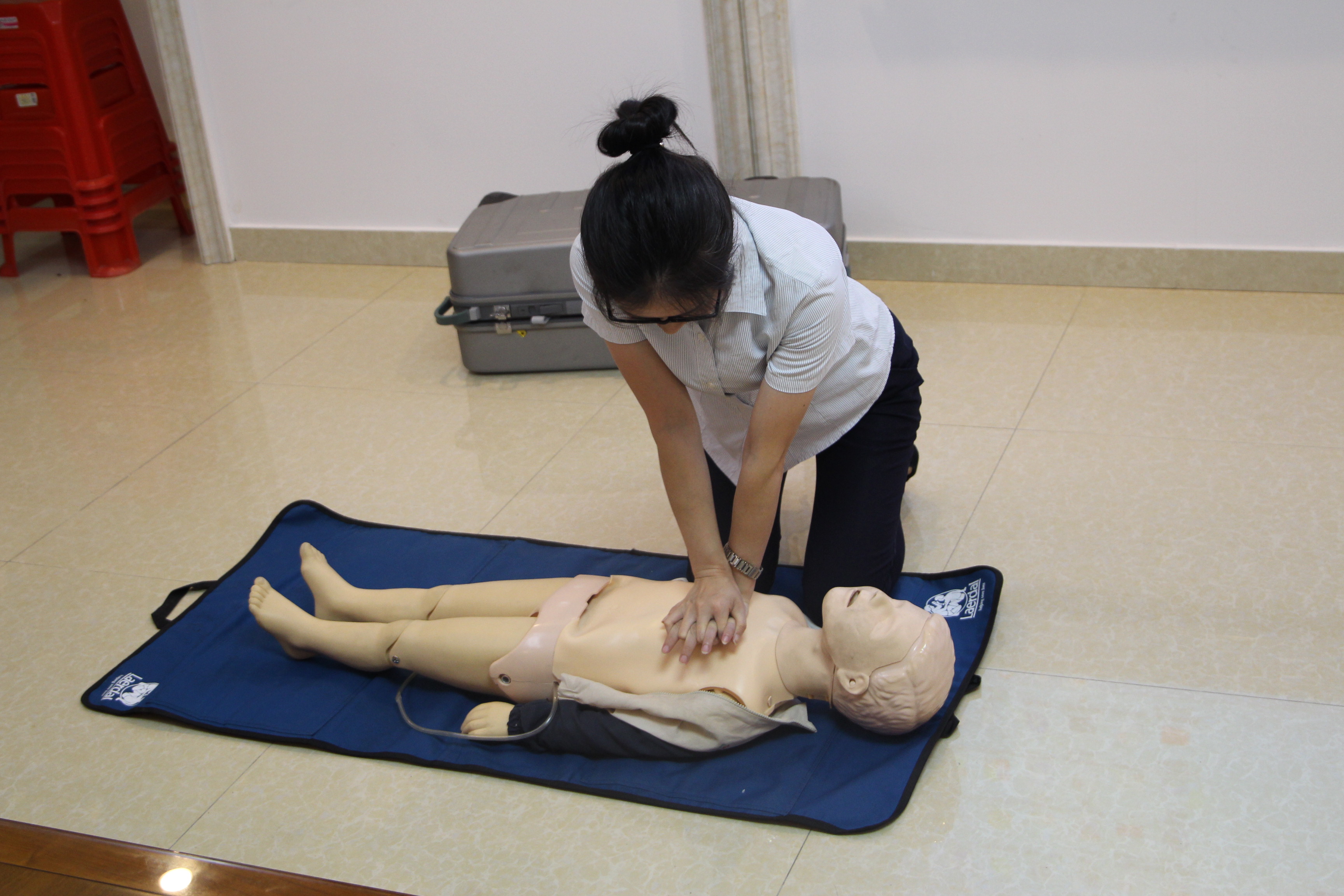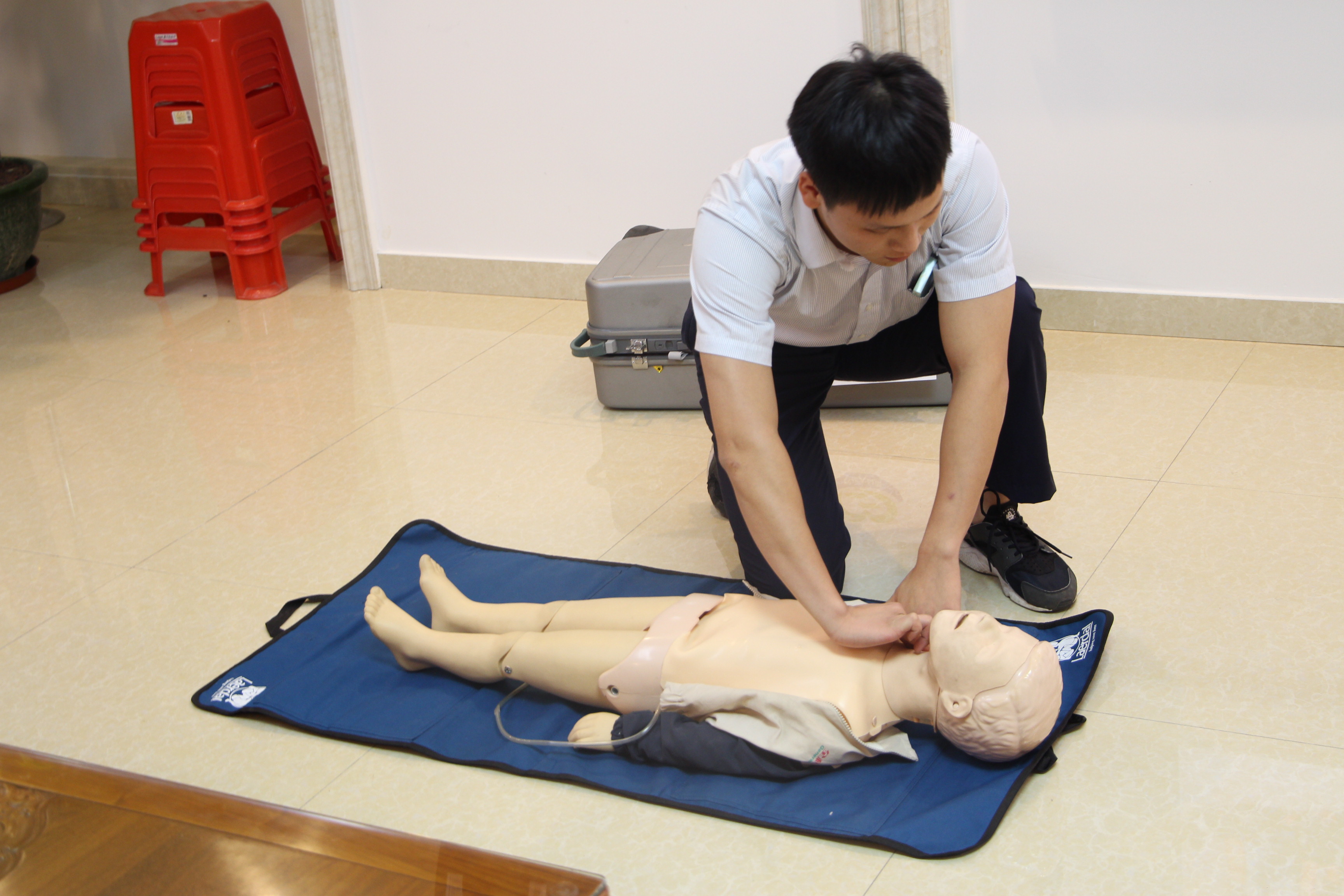 實(shí)操環(huán)節(jié),員工們爭先恐后扮演各類事故中會遇到的角色,躍躍欲試新學(xué)的心肺復(fù)蘇。