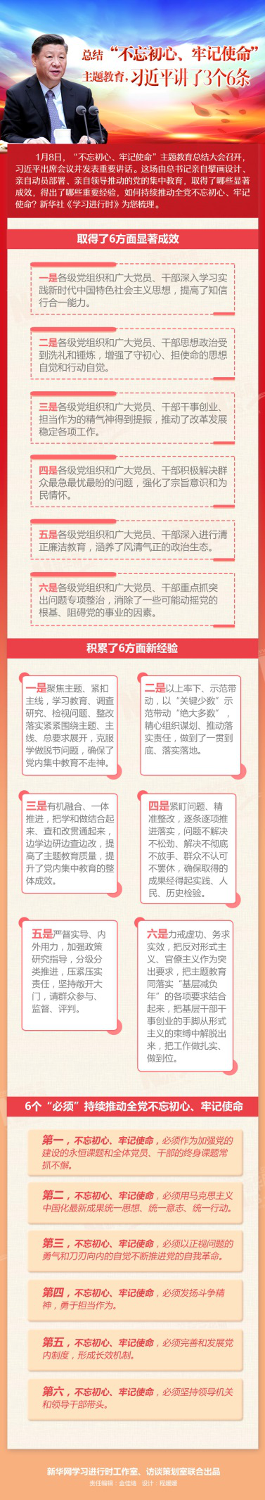總結(jié)“不忘初心、牢記使命”主題教育,習(xí)近平講了3個6條