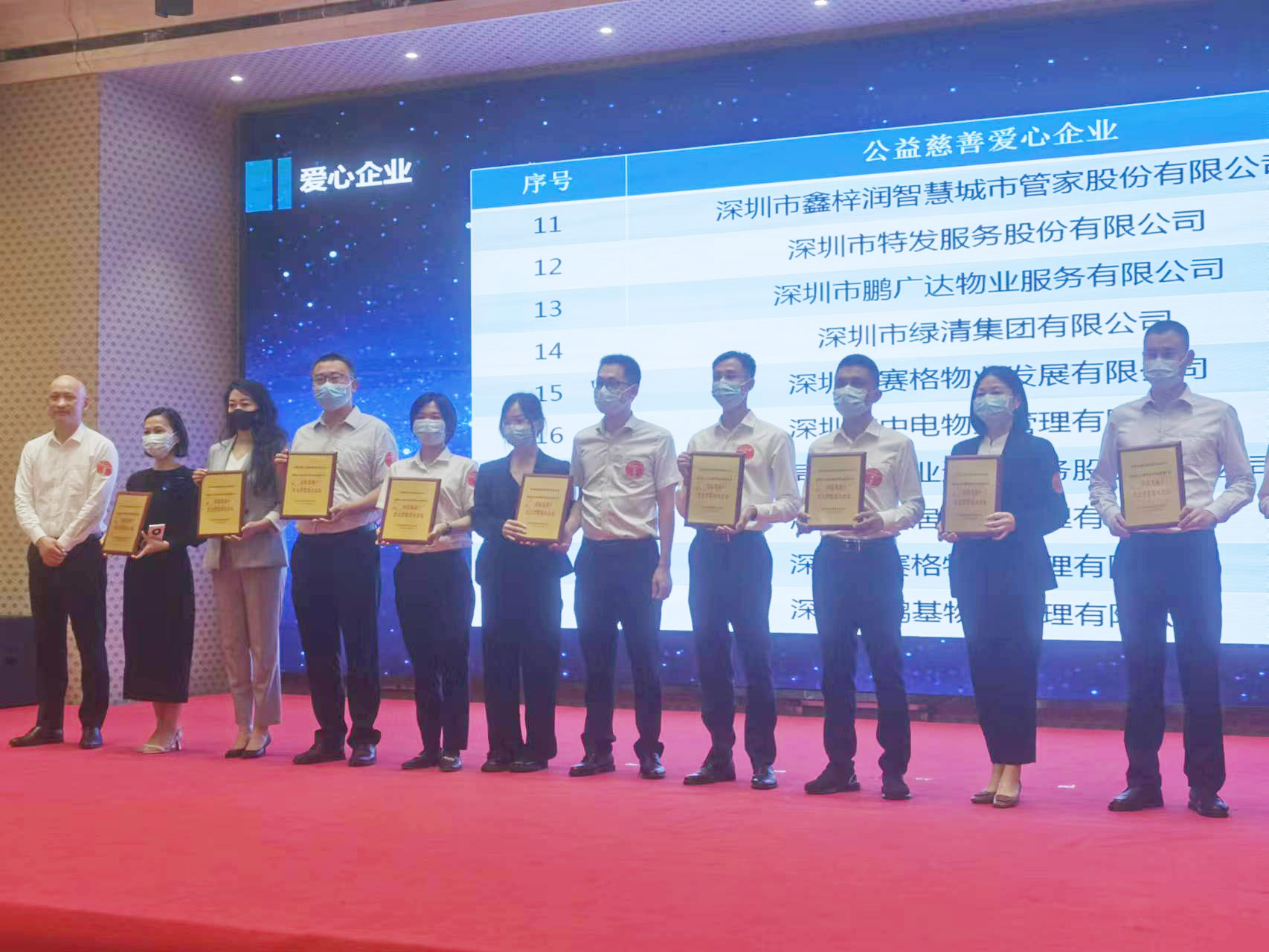會上,深圳物業(yè)管理行業(yè)協(xié)會對2021年度物業(yè)管理行業(yè)扶貧和公益慈善突出貢獻(xiàn)愛心企業(yè)和熱心企業(yè),2021年度深圳市物業(yè)管理行業(yè)協(xié)會特殊貢獻(xiàn)優(yōu)秀企業(yè)、優(yōu)秀企業(yè)和優(yōu)秀供應(yīng)商進(jìn)行了表彰。