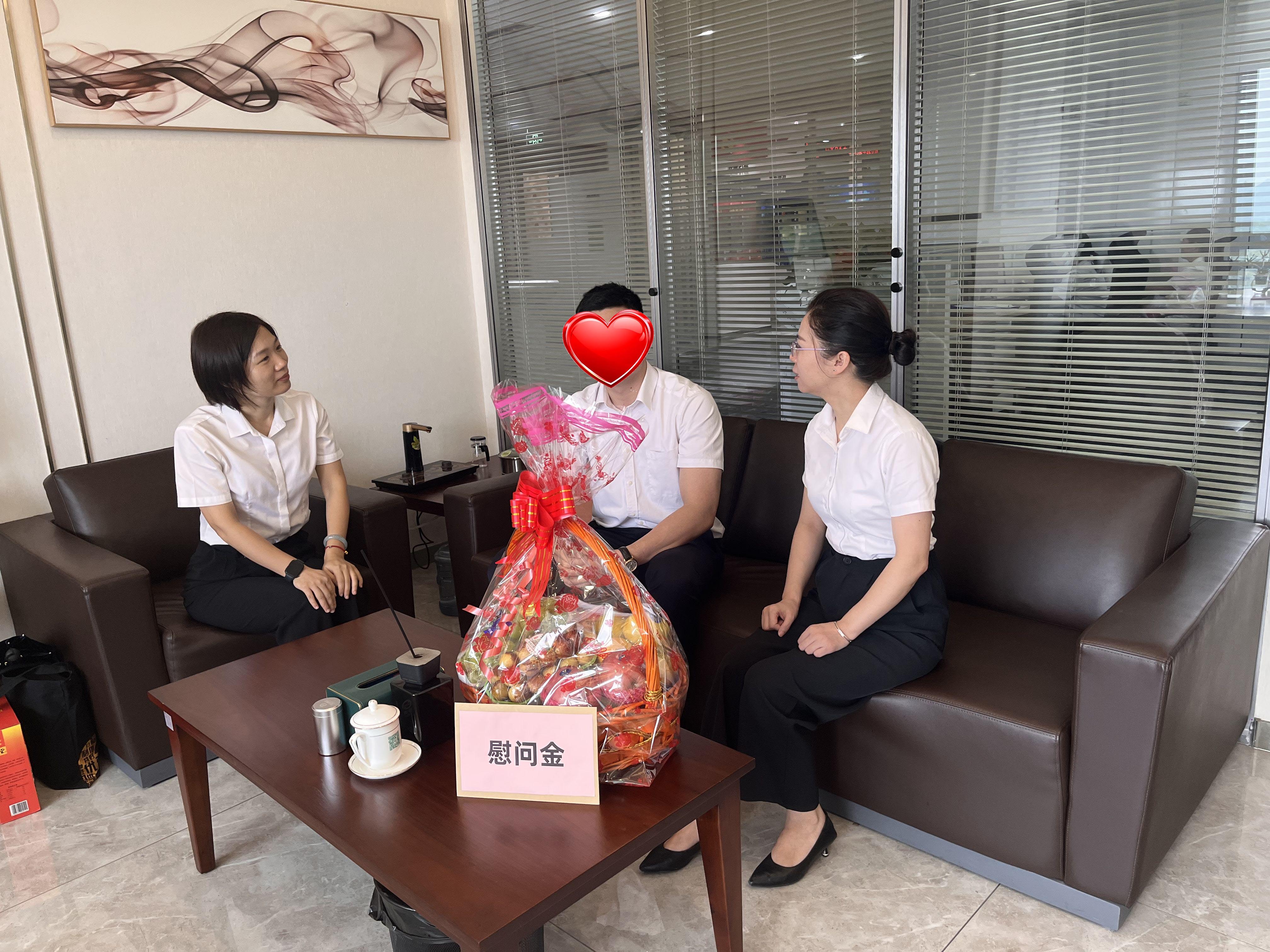 綠清支部書記齊慧、工會主席張新艷一行在洪某辦公室進(jìn)行慰問。